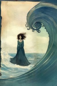 Цветна страница за писане * Морска вещица и голяма вълна * Без редове