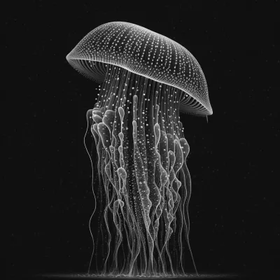 Siyah bir arka plan üzerinde bir denizanası çizimi