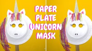 Как да си направим маска на еднорог от хартиена чиния, цветна хартия и прежда