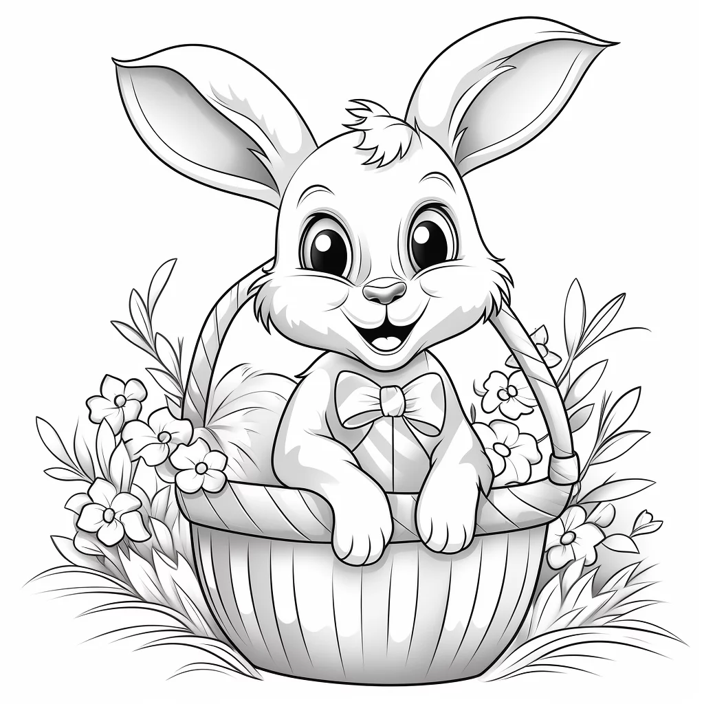 Printbare Malvorlage von einem Hasen im Korb » Zumipic | Zumipic