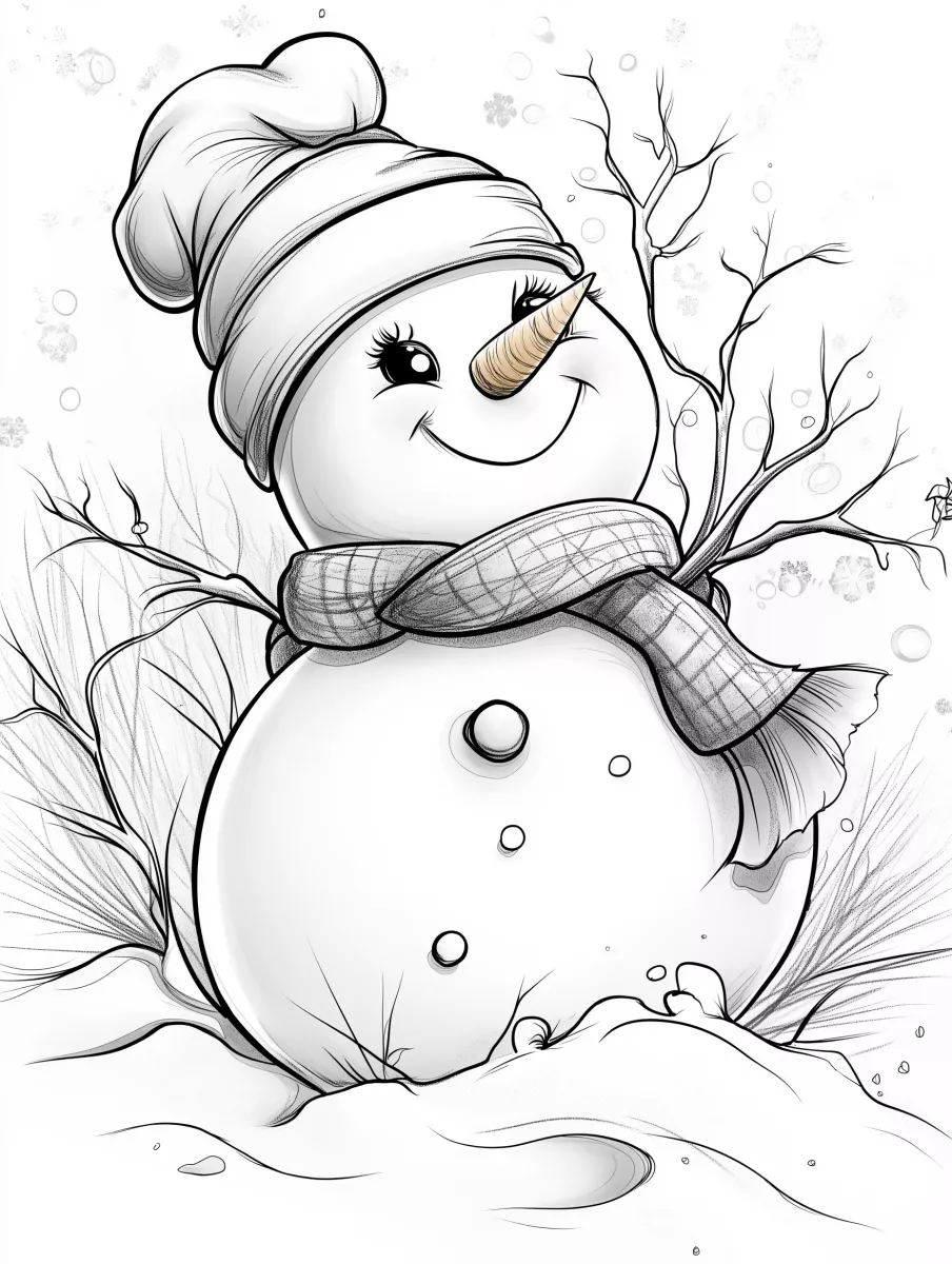 Printbare Malvorlage eines lächelnden Schneemanns mit Hut und Schal * Winter » Zumipic | Zumipic
