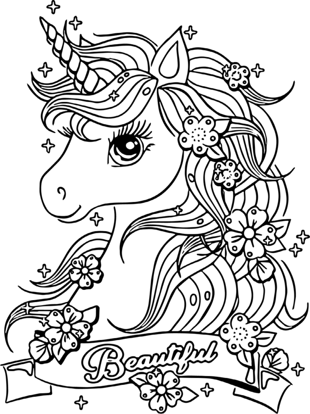 Ausmalbild zum Ausdrucken von Einhorn-Pony