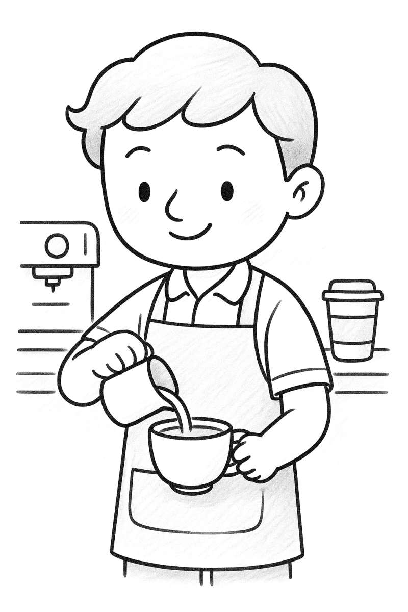 Barista im Café - Zeichnung zum Drucken und Ausmalen » Zumipic | Zumipic