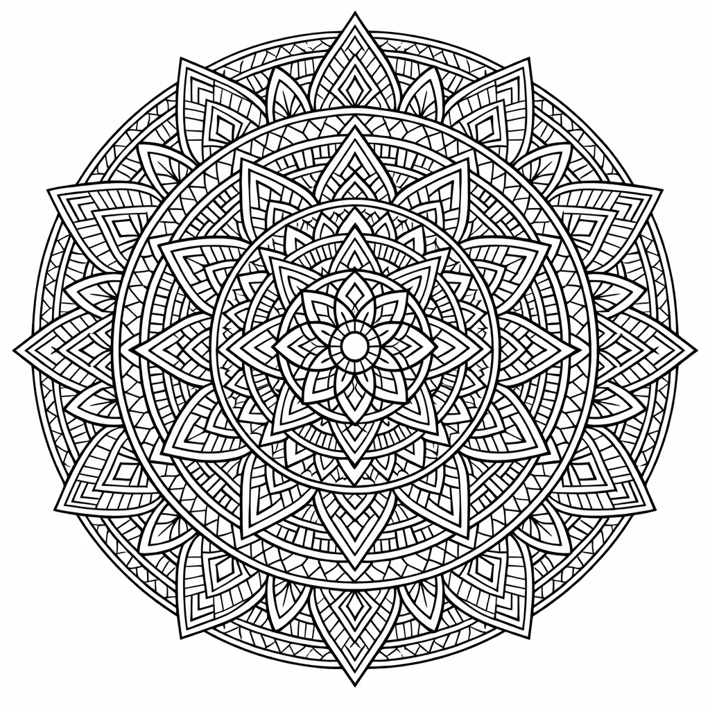 Detailliertes geometrisches Mandala – Komplexe Malvorlagen für Erwachsene » Zumipic | Zumipic