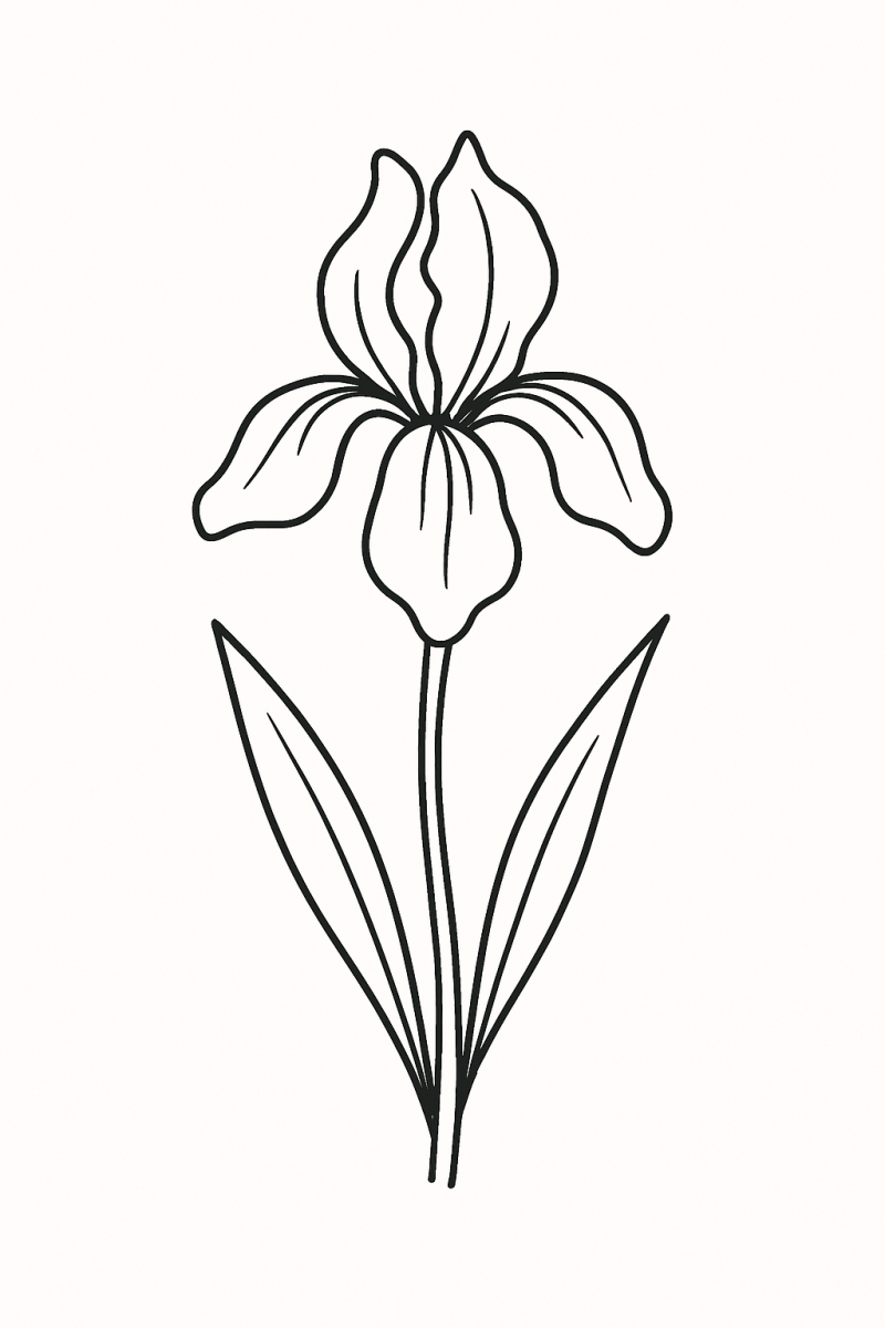 Elegante Zeichnung eines Iris – Bild zum Drucken und Färben