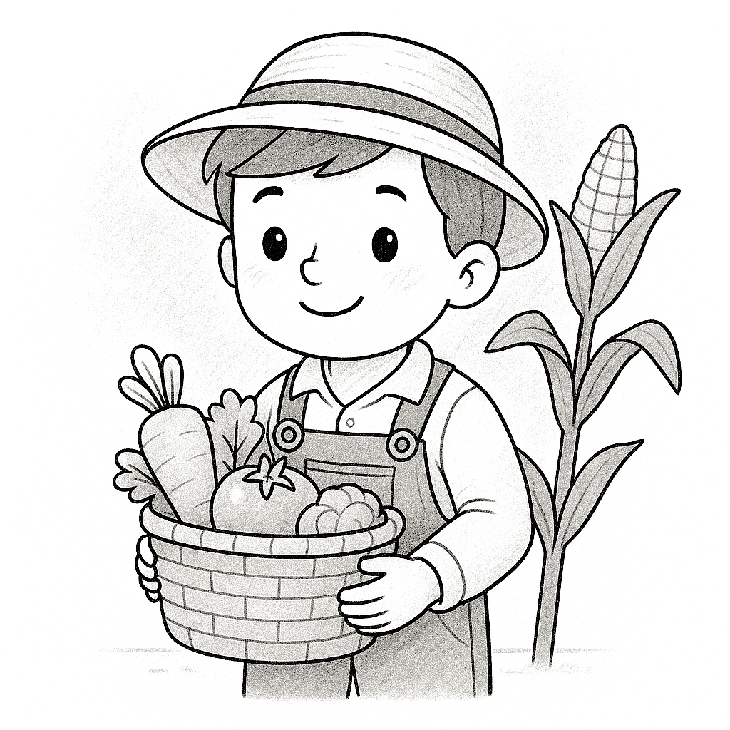 Junger Bauer mit Gemüse - Malvorlage zum Ausdrucken und Ausmalen » Zumipic | Zumipic