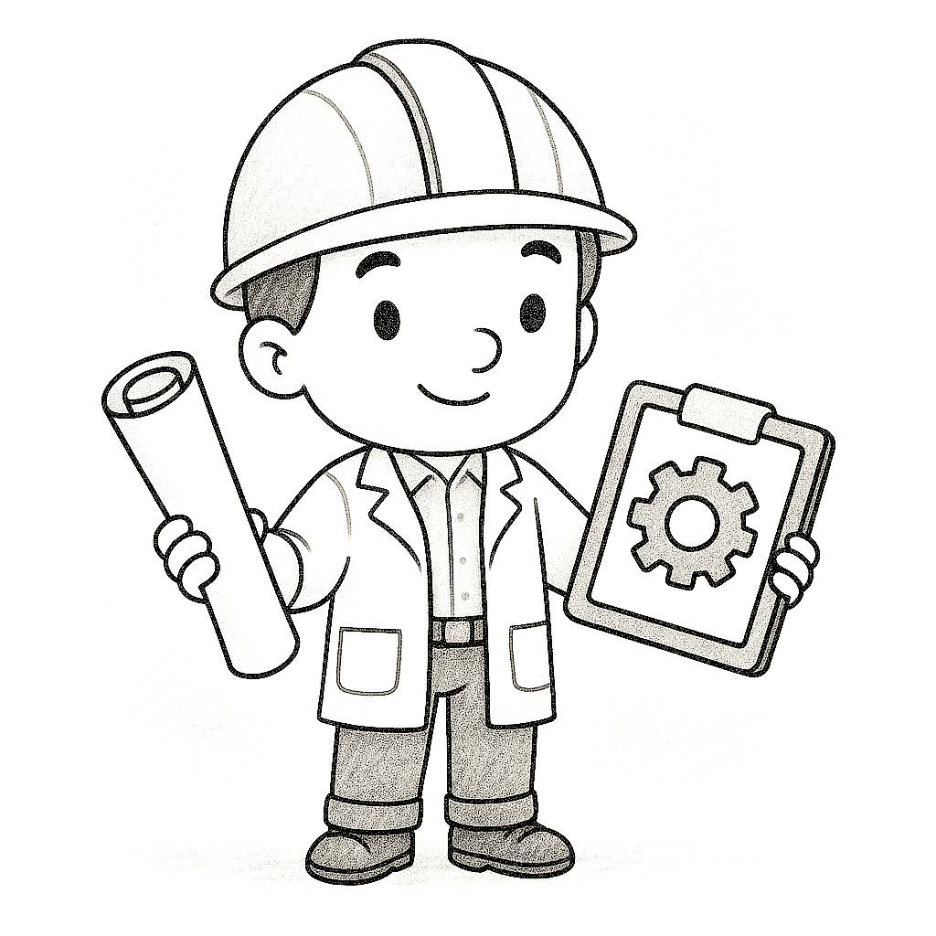 Junger Ingenieur mit Zeichnung und Plan - Bild zum Drucken und Ausmalen » Zumipic | Zumipic