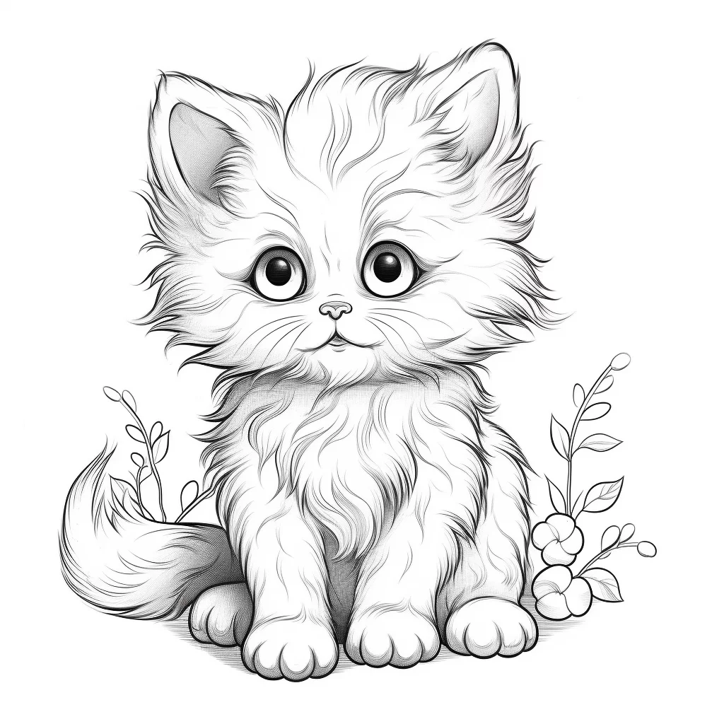 Kleines Flauschiges Kätzchen * Ausmalbild zum Ausdrucken