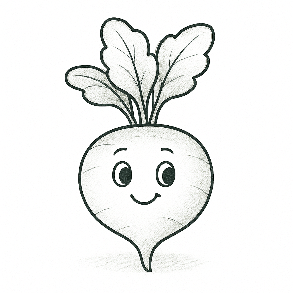 Lächelnder Rettich – Zeichnung zum Ausdrucken und Ausmalen