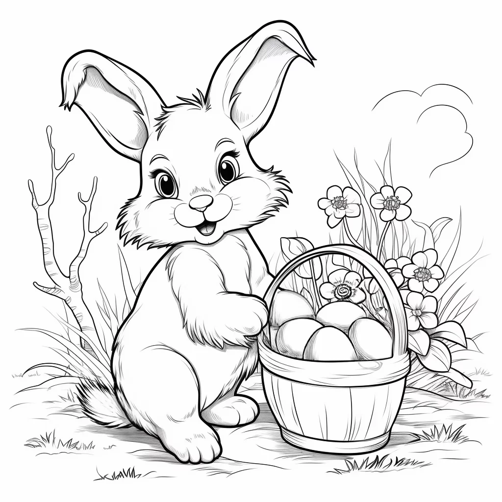 Printbare Malvorlage eines Hasen mit Osterkorb voller Eier » Zumipic | Zumipic