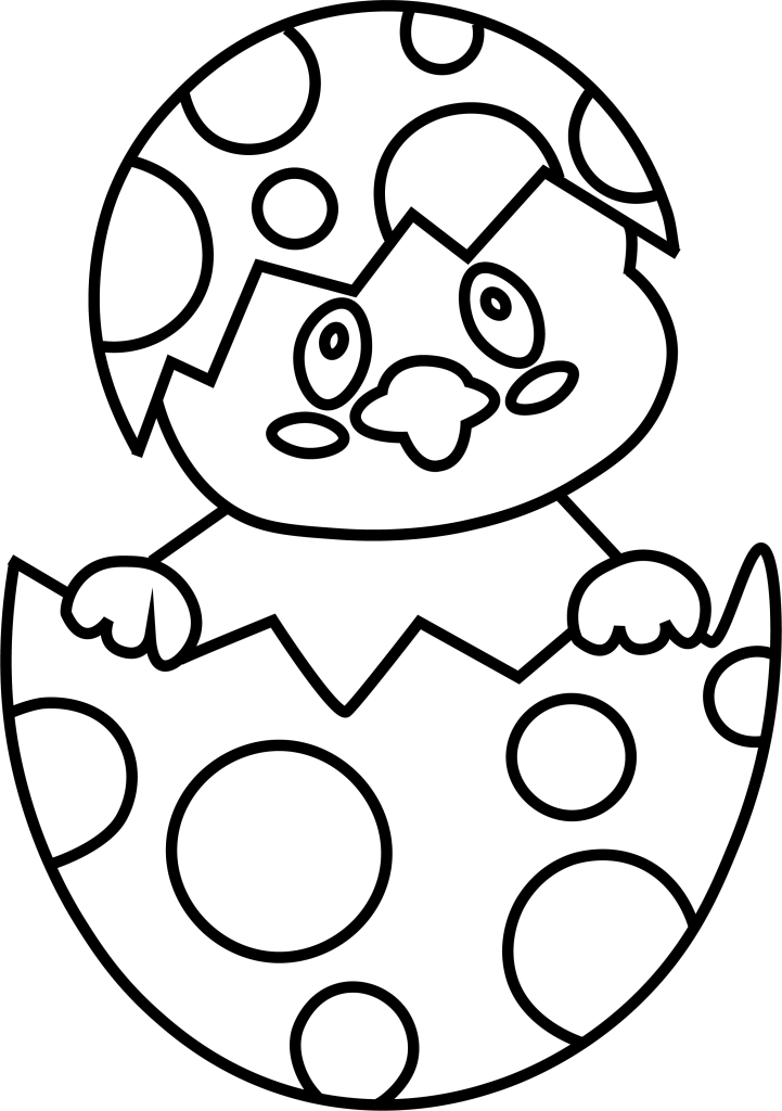 Ein Küken schlüpft aus einem Ei – Malvorlage für Ostern