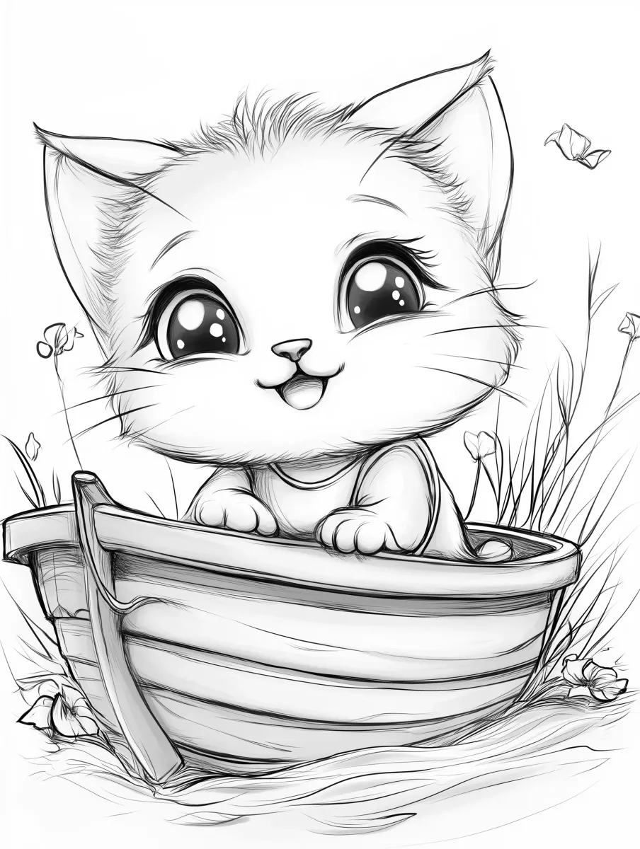 Malvorlage eines süßen Kätzchens im Boot » Zumipic | Zumipic