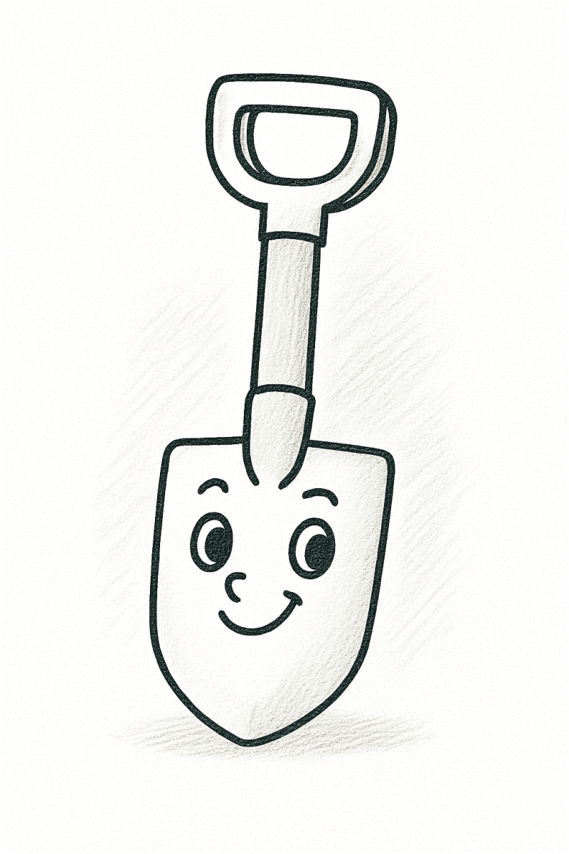 Zeichnung eines lächelnden Spatens zum Ausdrucken und Ausmalen » Zumipic | Zumipic