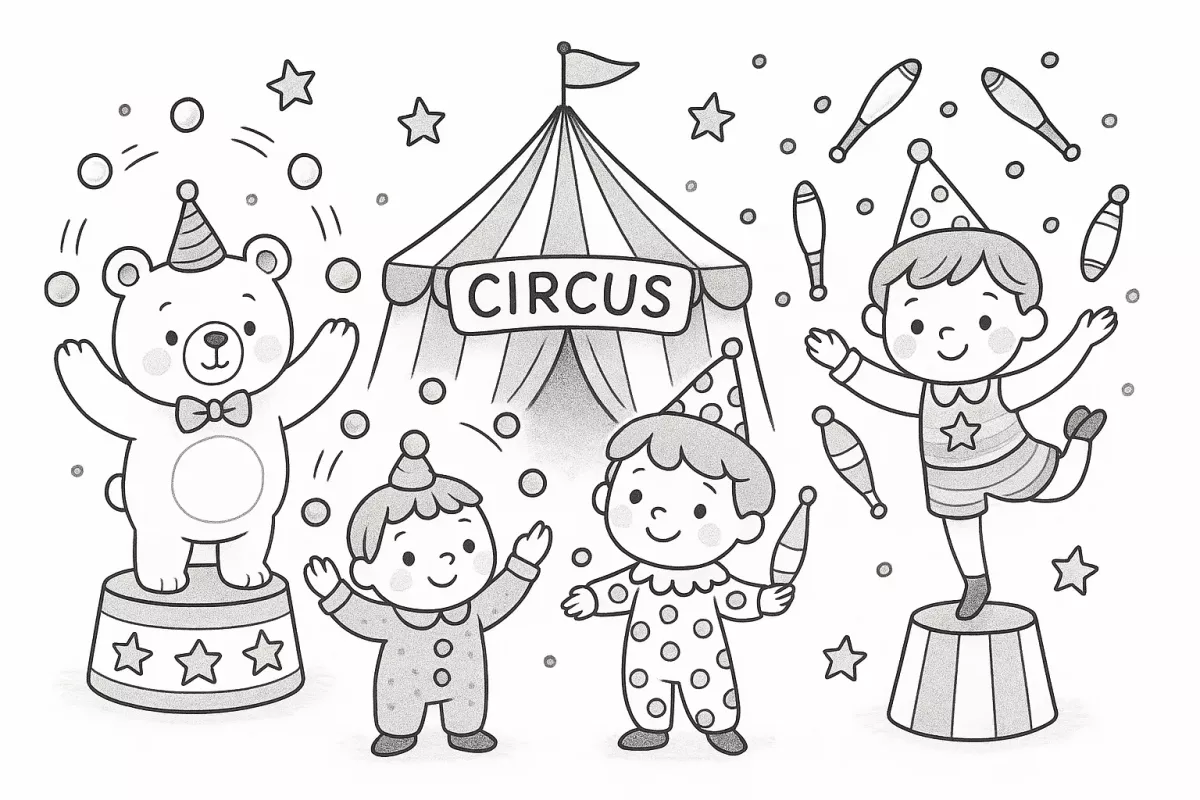 Zirkus und Zirkusjongleure * Ausmalbild zum Ausdrucken » Zumipic | Zumipic
