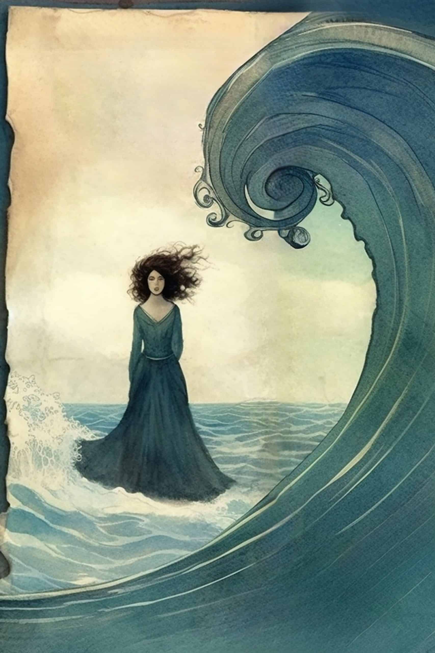Schreibseite * Meereshexe und große Welle * Ohne Linien » Zumipic | Zumipic