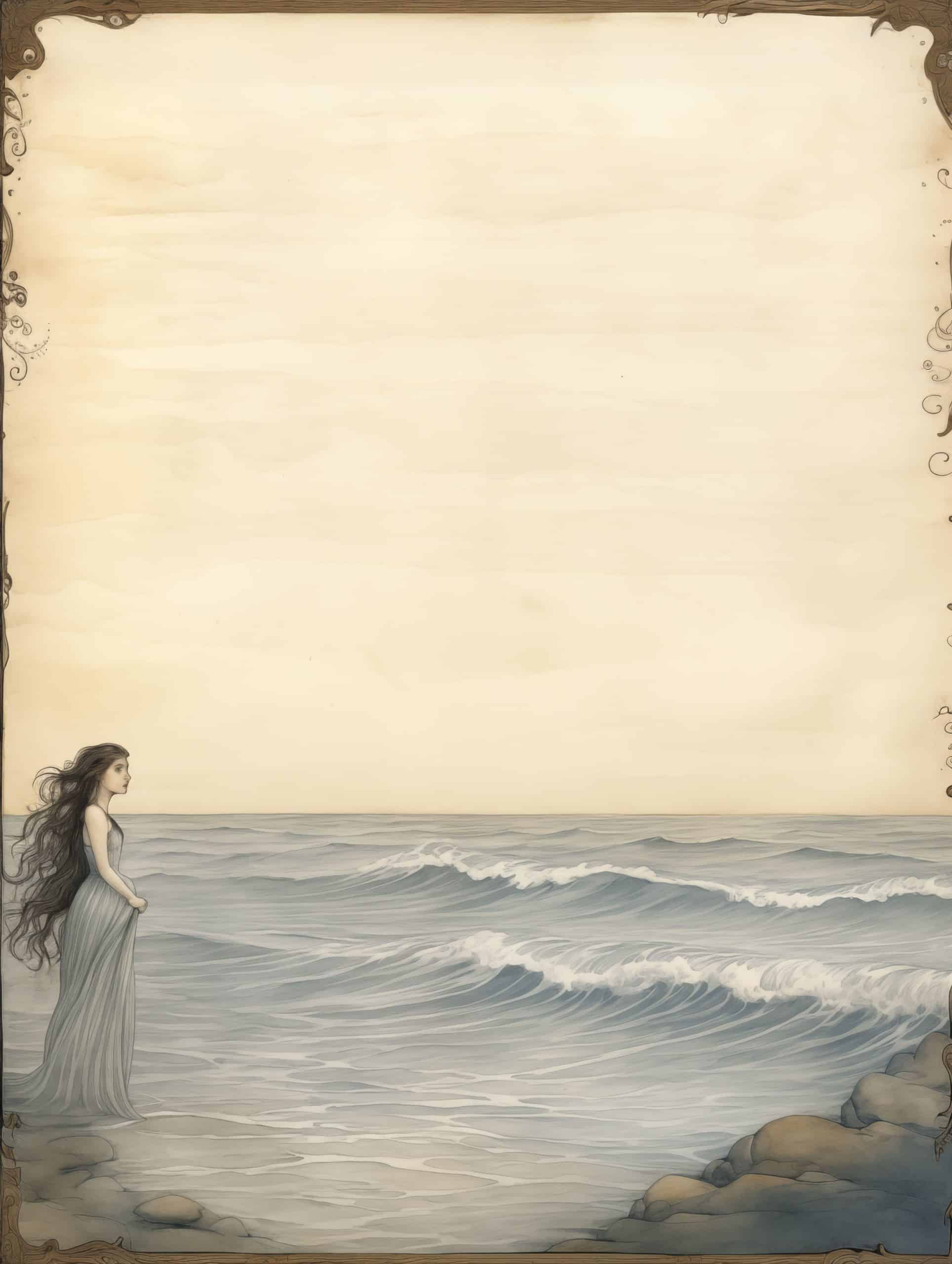 Seite zum Schreiben * Meereshexe am Ufer * Ohne Linien » Zumipic | Zumipic