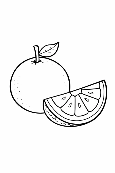 Easy Orange Coloring Page for Kids (Printable Whole & Slice Design)