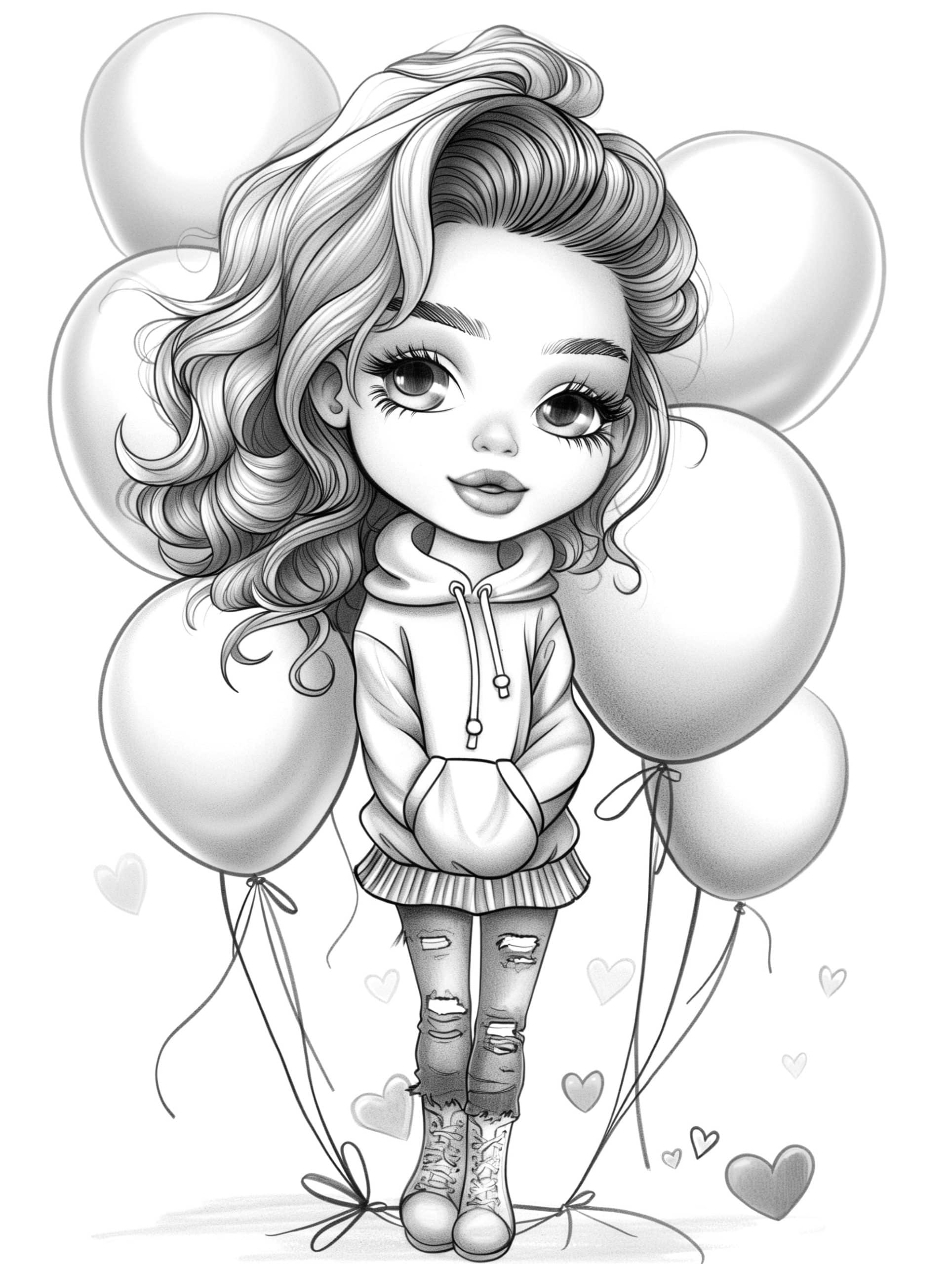Drawing of a beautiful girl with torn jeans