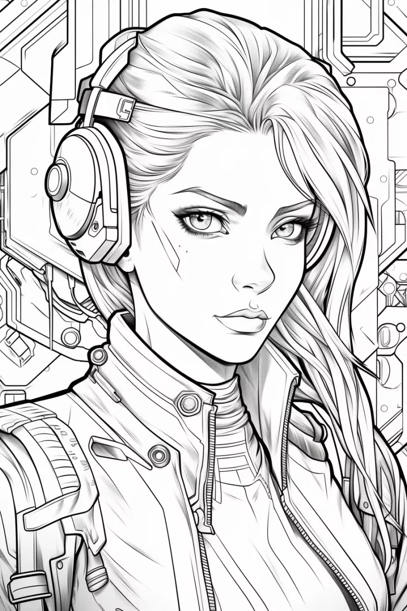 Futuristic scene * girl * painting for coloring » Zumipic | Zumipic