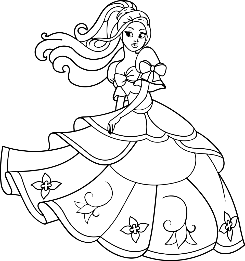 Printable Coloring Page of a Girl in a Beautiful Dress » Zumipic | Zumipic