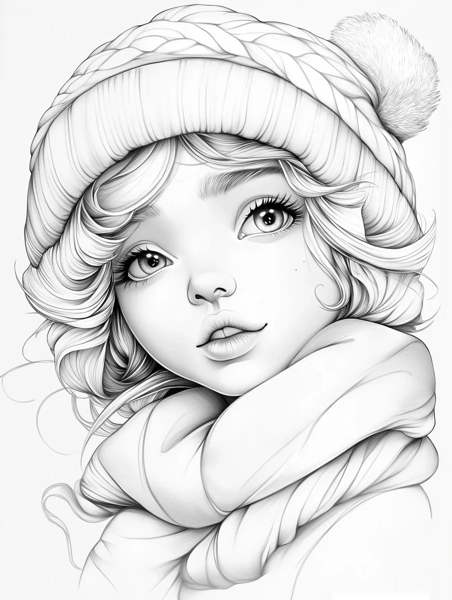 Printable Coloring Page of a Cute Little Girl with a Winter Hat and Scarf » Zumipic | Zumipic