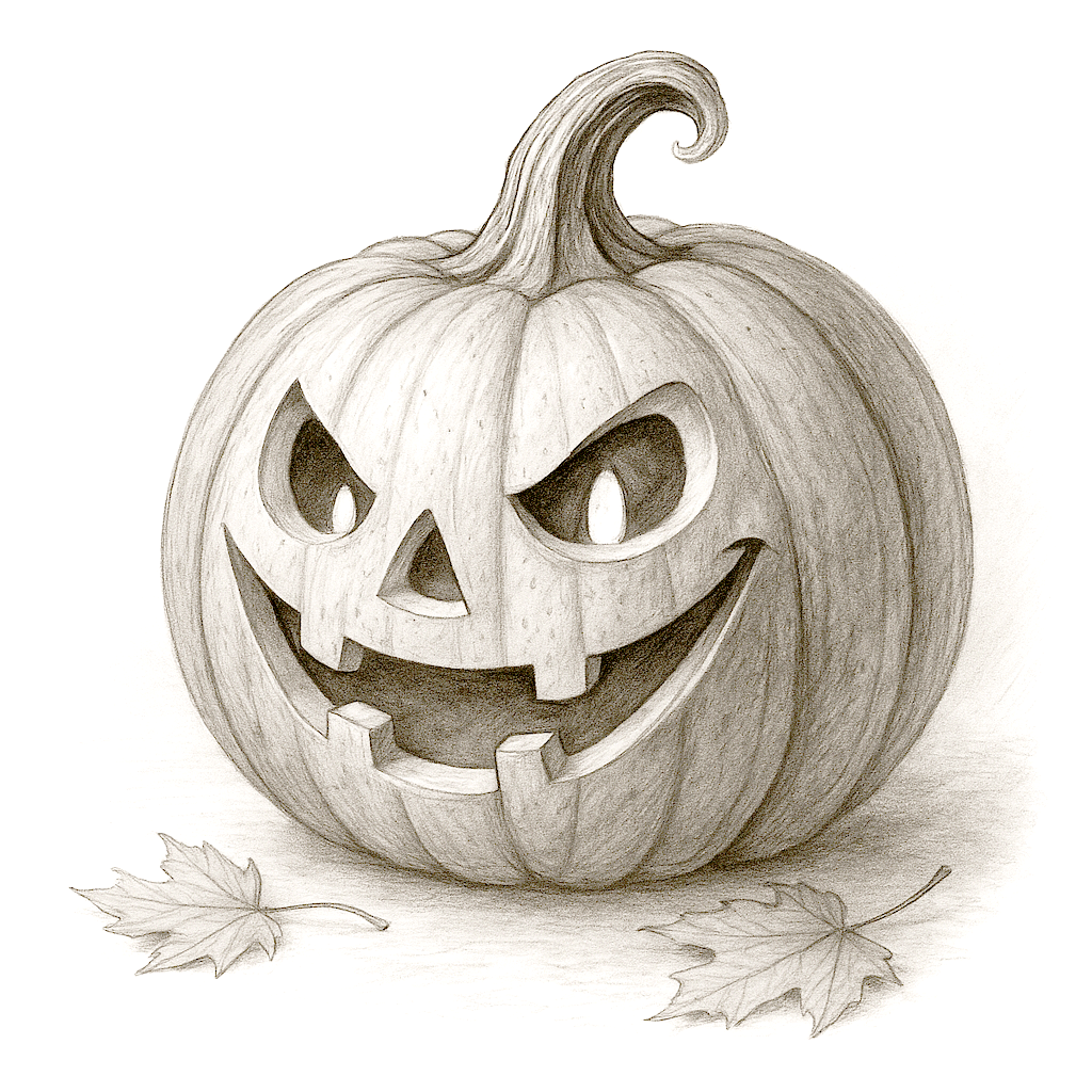 Playful Halloween Pumpkin – Black and White Smiling Coloring Page » Zumipic | Zumipic