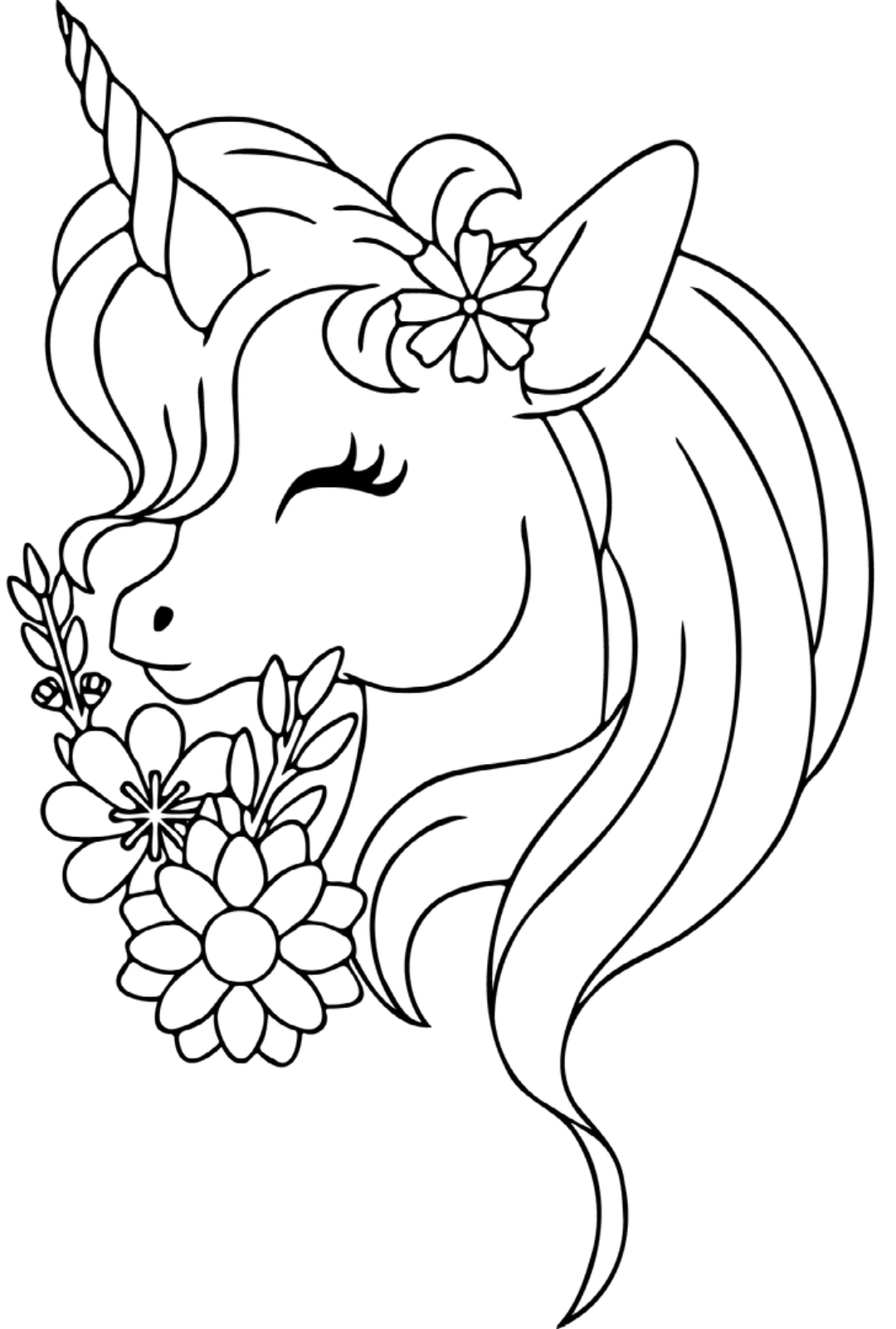 Unicorn in a Magical Meadow of Flowers – Coloring Page