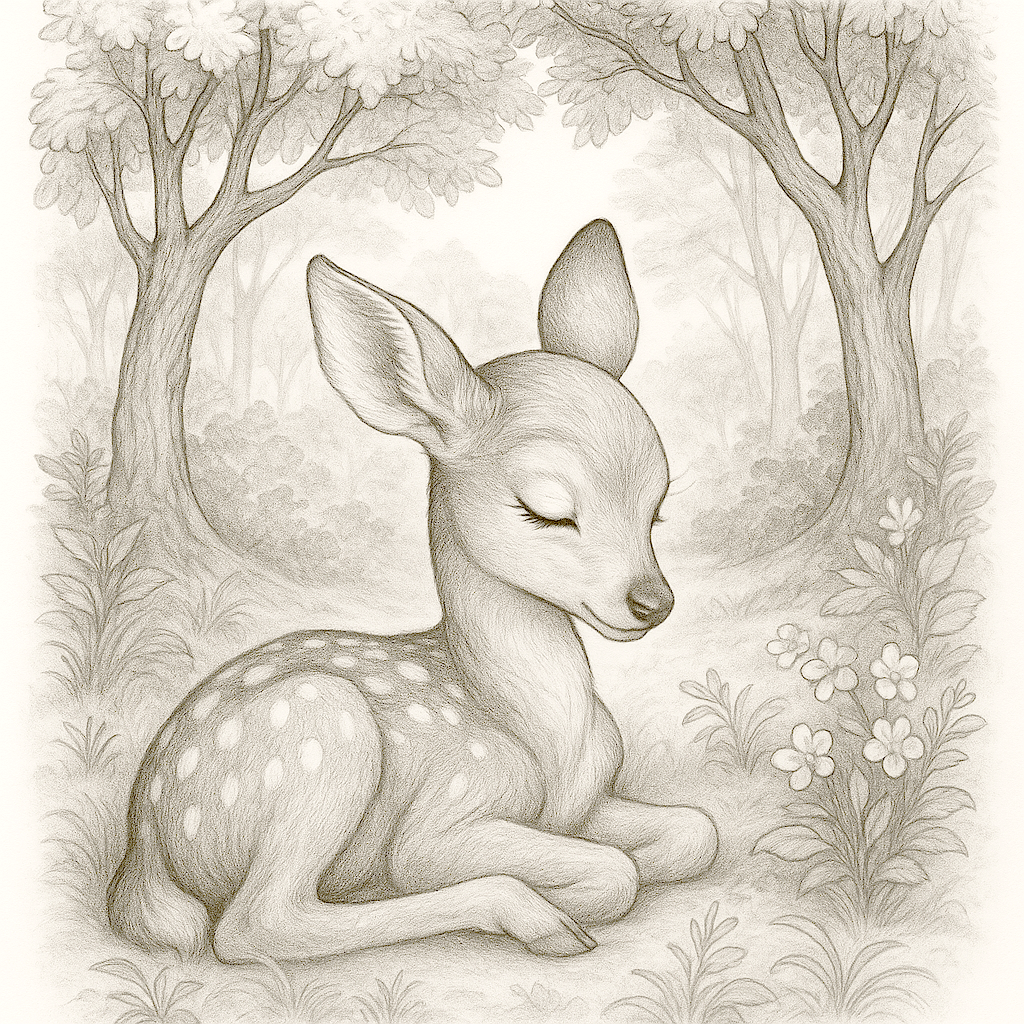 Sleeping Fawn in the Forest – Beautiful Black and White Coloring Page