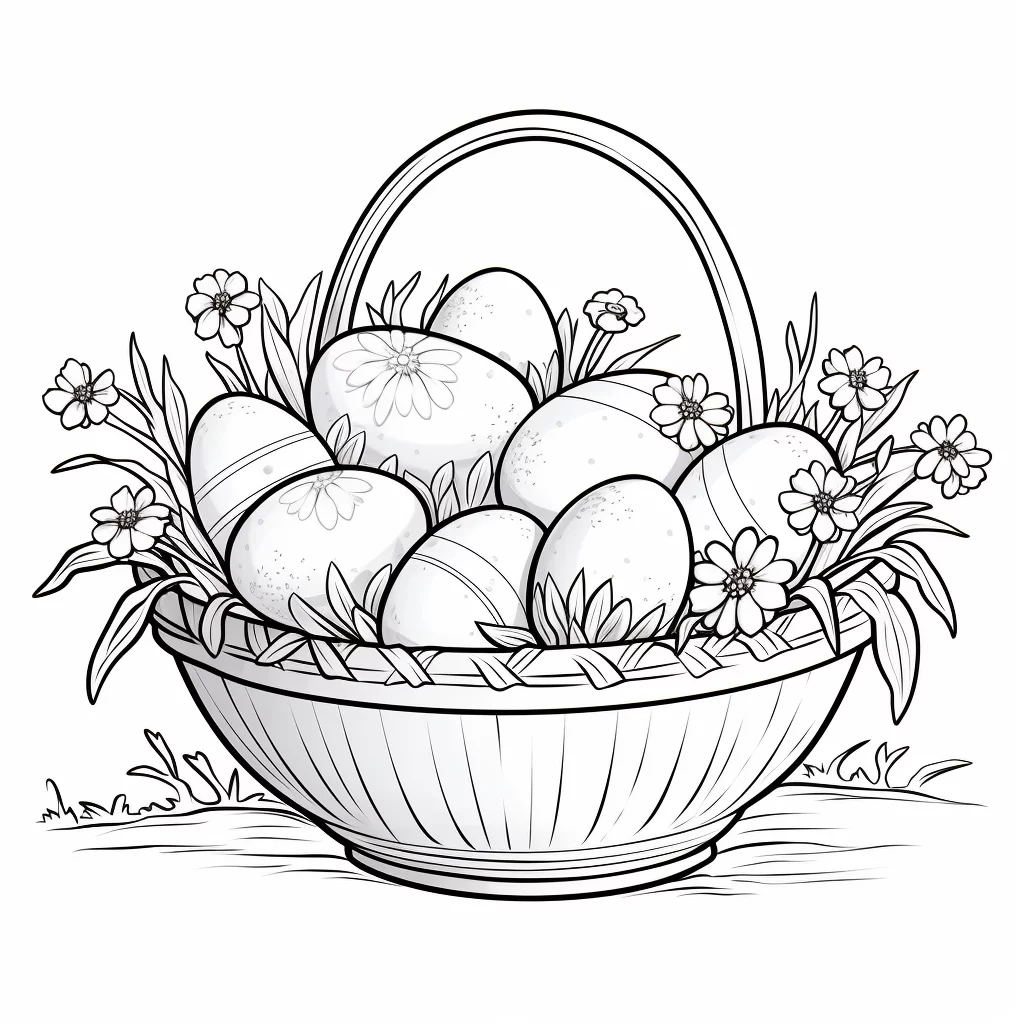 Cesta de Pascua llena de huevos – Hoja para colorear