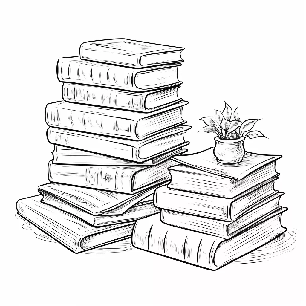 Página para Colorear Imprimible de una Pila de Libros y una Flor en Maceta » Zumipic | Zumipic