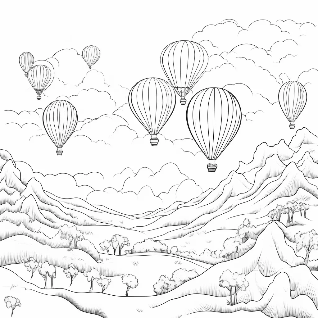 Page à colorier imprimable de montgolfières dans le ciel » Zumipic | Zumipic