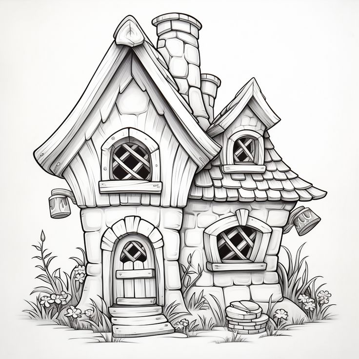 Page de Coloriage Imprimable de Maison 3D