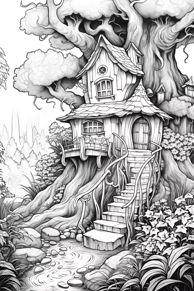 Page de Coloriage Imprimable de Maison dans les Arbres » Zumipic | Zumipic