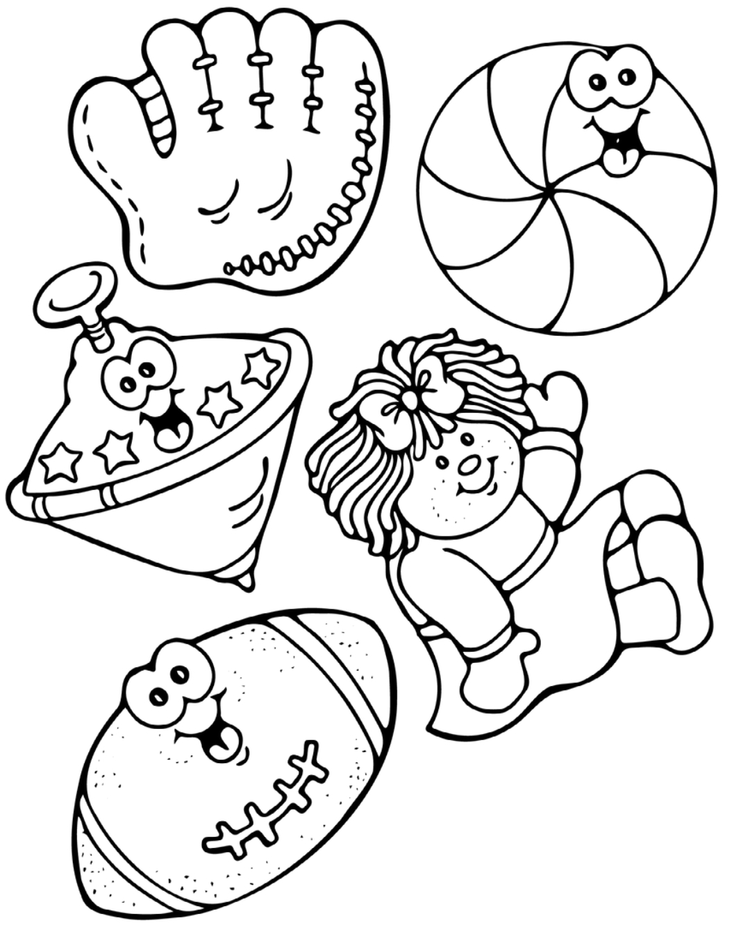 Page de coloriage imprimable de Toupie, Poupée et Balles » Zumipic | Zumipic