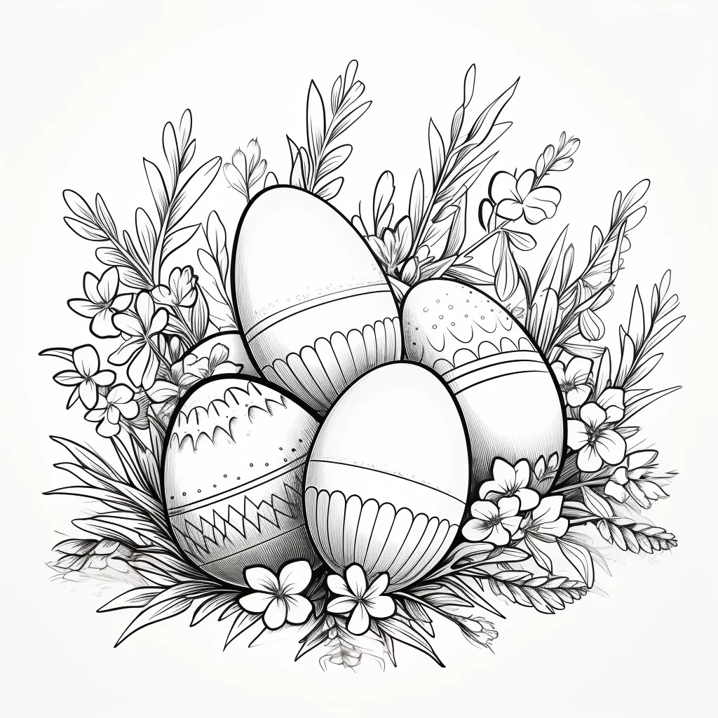 Pagina da colorare di uova di Pasqua e fiori » Zumipic | Zumipic