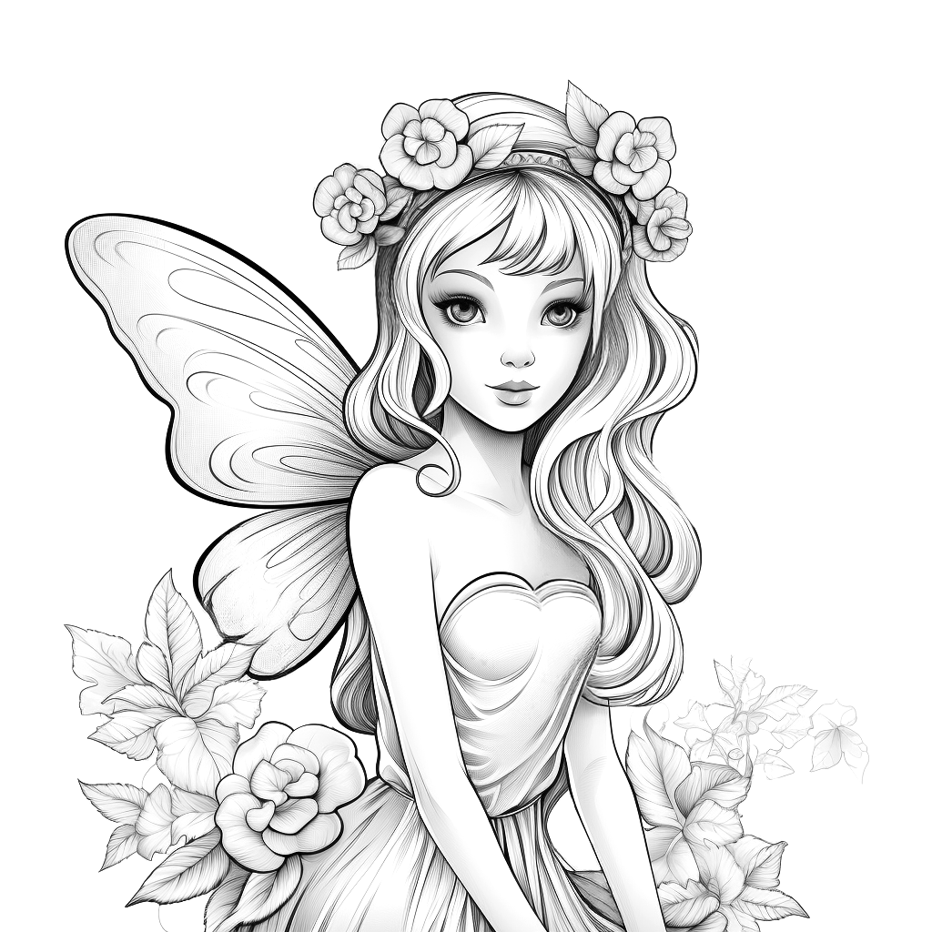 Pagina da colorare stampabile di una bella fata ragazza