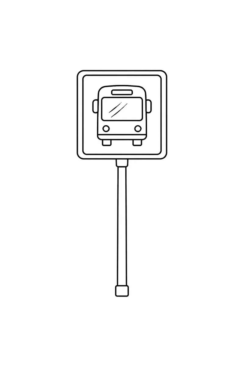 Знакът на автобусната спирка показва къде спират автобусите, за да вземат и оставят пътници. Помага на хората да знаят къде да изчакат безопасно обществения транспорт. Научаването на този знак помага на децата да разберат как да използват автобуси и да са в безопасност в близост до пътищата.