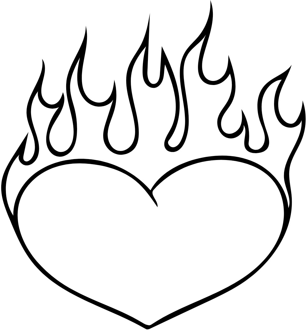 Printable Coloring Page of a Burning Heart » Zumipic | Zumipic