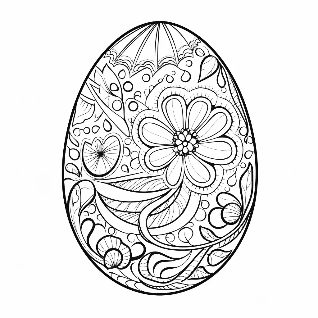 Printable Coloring Page of an Easter Egg with Colorful Patterns