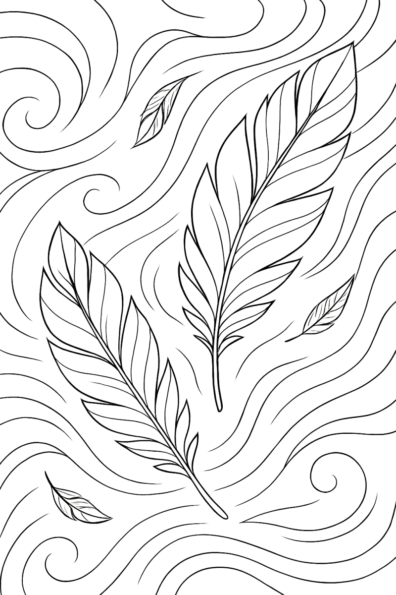Yüzen Tüyler & Rüzgar İzleri – Anksiyete Giderici Rahatlatıcı Boyama Sayfası